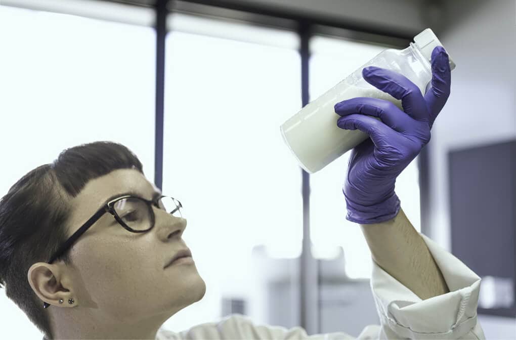 Spray drying is the process of removing water from the milk, producing the beginning of the fine powder that is eventually found in the finished product.
