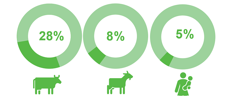 Goat milk, like human milk, is naturally lower in a protein called αS1-casein, compared to cow’s milk1,2. This leads to a naturally softer curd being formed in the stomach3, meaning goat milk is naturally easy to digest and, unlike cow’s milk formula, requires no whey addition to support digestibility in infants.